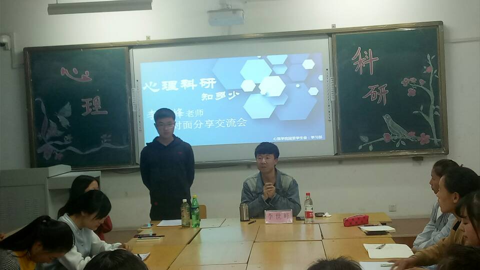 通过此次分享会,同学们不仅对于心理学科研方面有了进一步地了解,也收获了许多学习方法和学习经验,对于今后相关心理学知识的学习打下了基础。(龙雪)