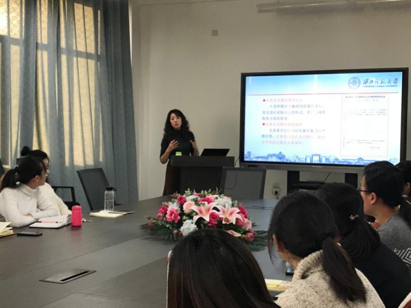 学院党委副书记蒋玲主持了开班仪式并以“中国共产党党员发展工作流程”为题主讲了第一节培训课,她详细解读了发展党员的5个阶段25个步骤,对学员们从递交入党申请书之日起如何书写规范的思想汇报等书面材料提出了具体要求。