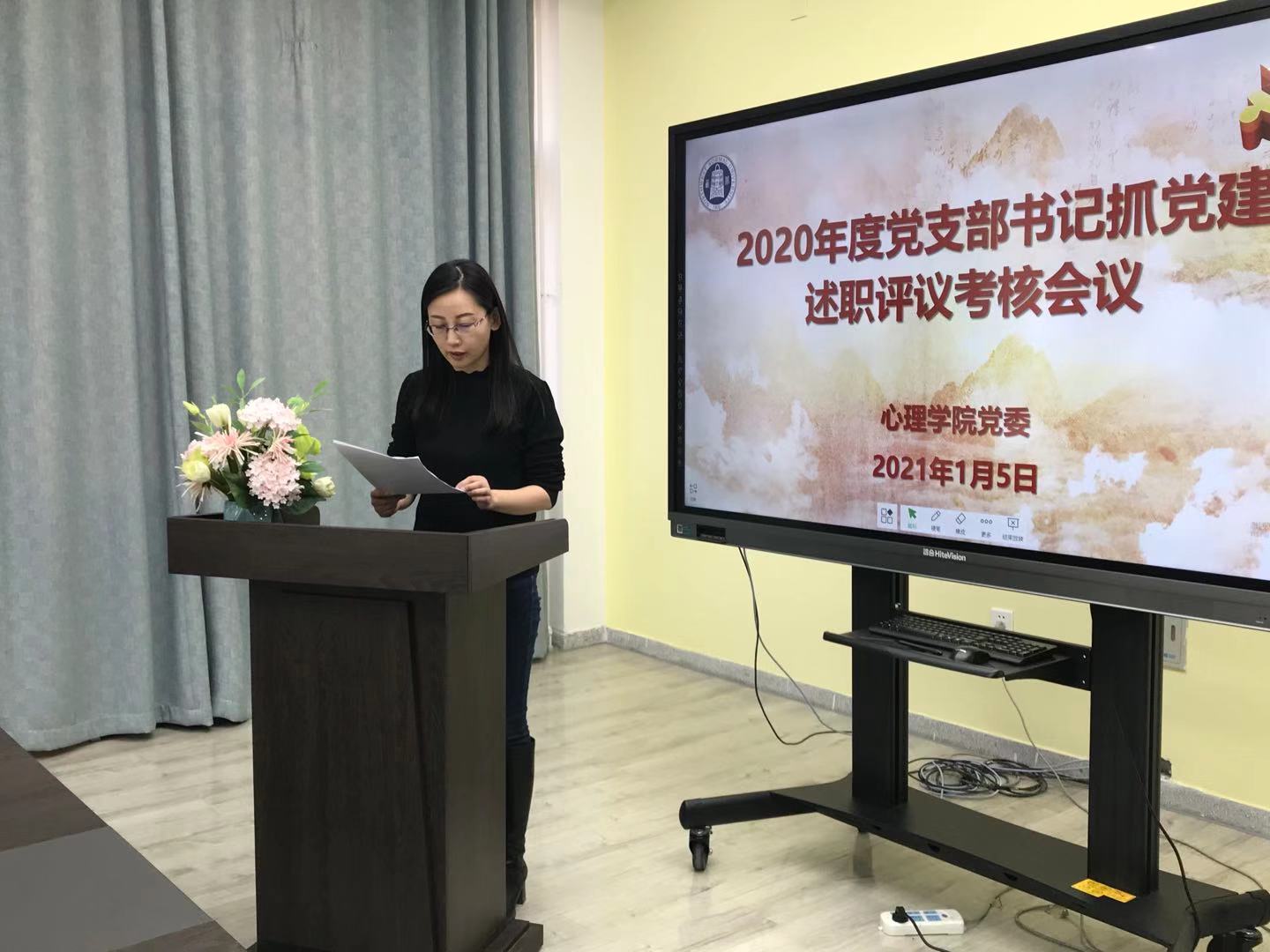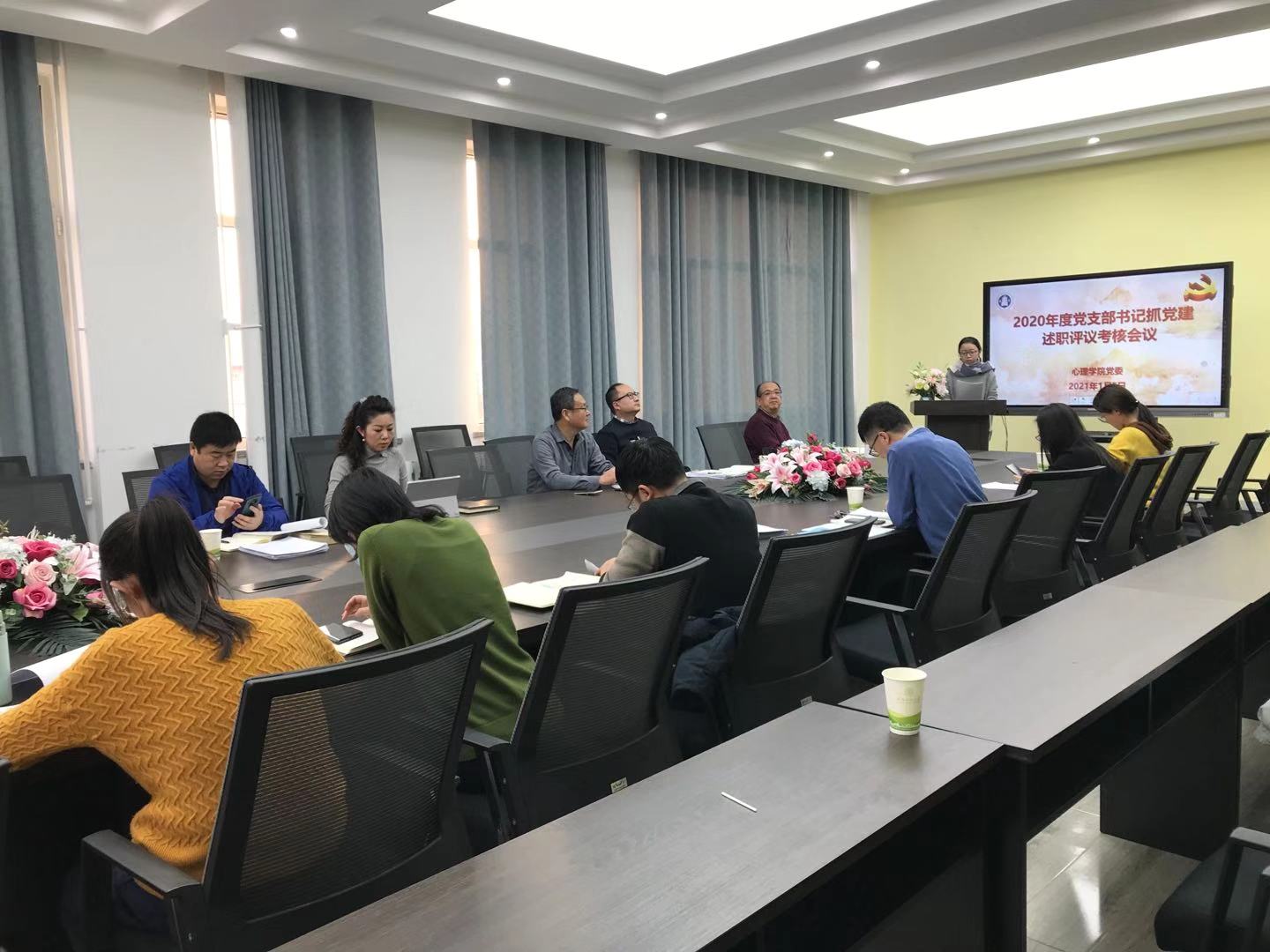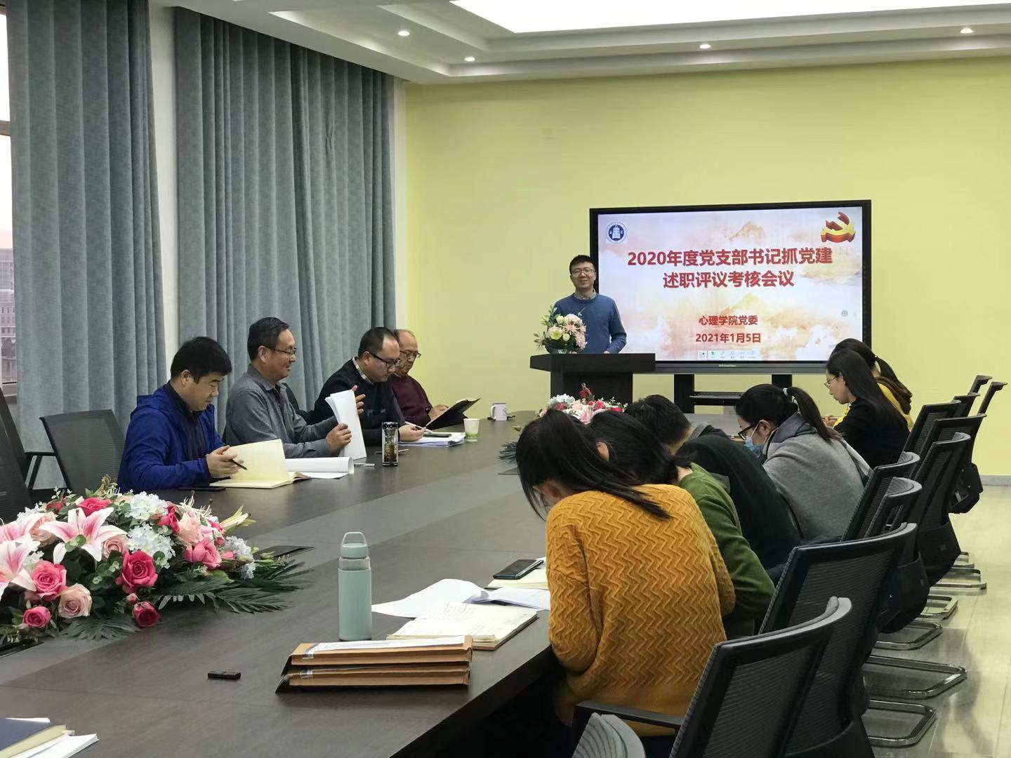 2021年1月5日下午,心理学院党委在特教楼401会议室举行了2020年度党支部书记述职评议考核会。学院领导班子成员、党委委员和师生党员代表参加会议。党委书记刘慧阳同志主持会议。