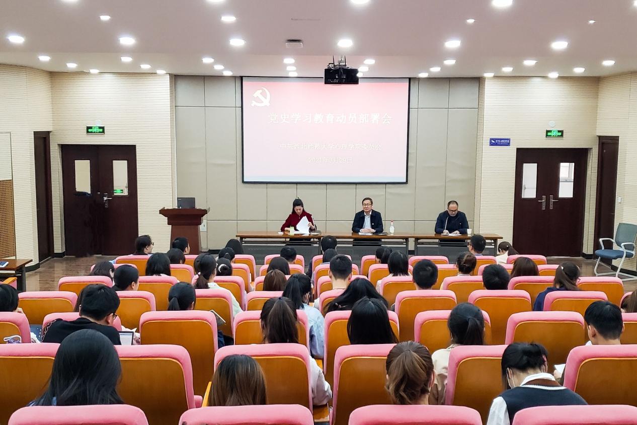 3月29日下午,tyc8722太阳集团城党委在新校区特教楼159报告厅召开党史学习教育动员部署大会。学院党员领导干部、党委委员和全体师生党员参加会议。学院党委书记刘慧阳作动员讲话,党委副书记蒋玲作工作安排,院长赵鑫主持会议。