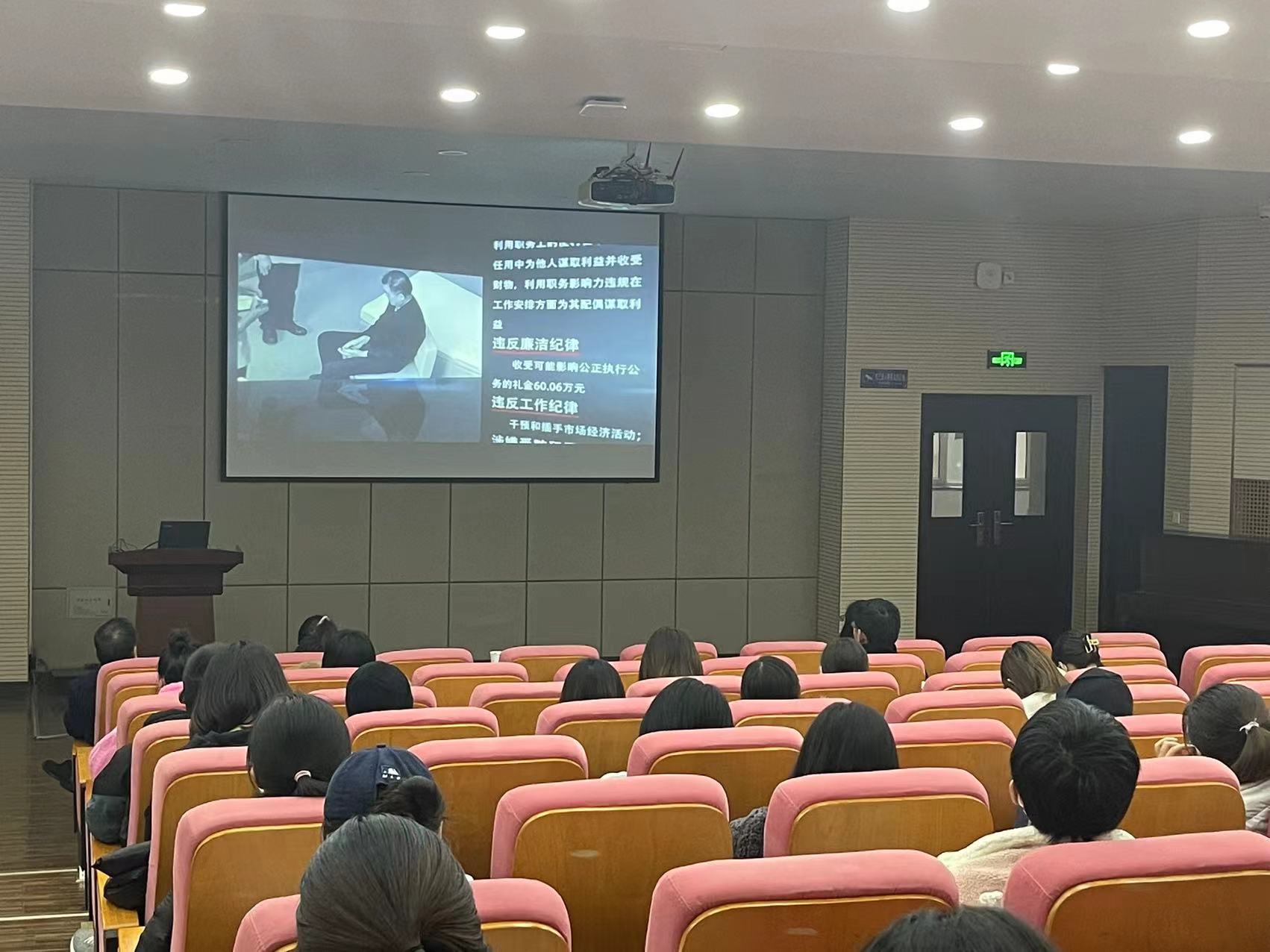 2021年12月10日下午,tyc8722太阳集团城党委在新校区特教159报告厅召开“增强廉洁自律意识 营造风清气正氛围 ”廉政党课暨警示教育大会,全体教职工和学生党员110余人参加会议。学院院长赵鑫同志主持会议。
