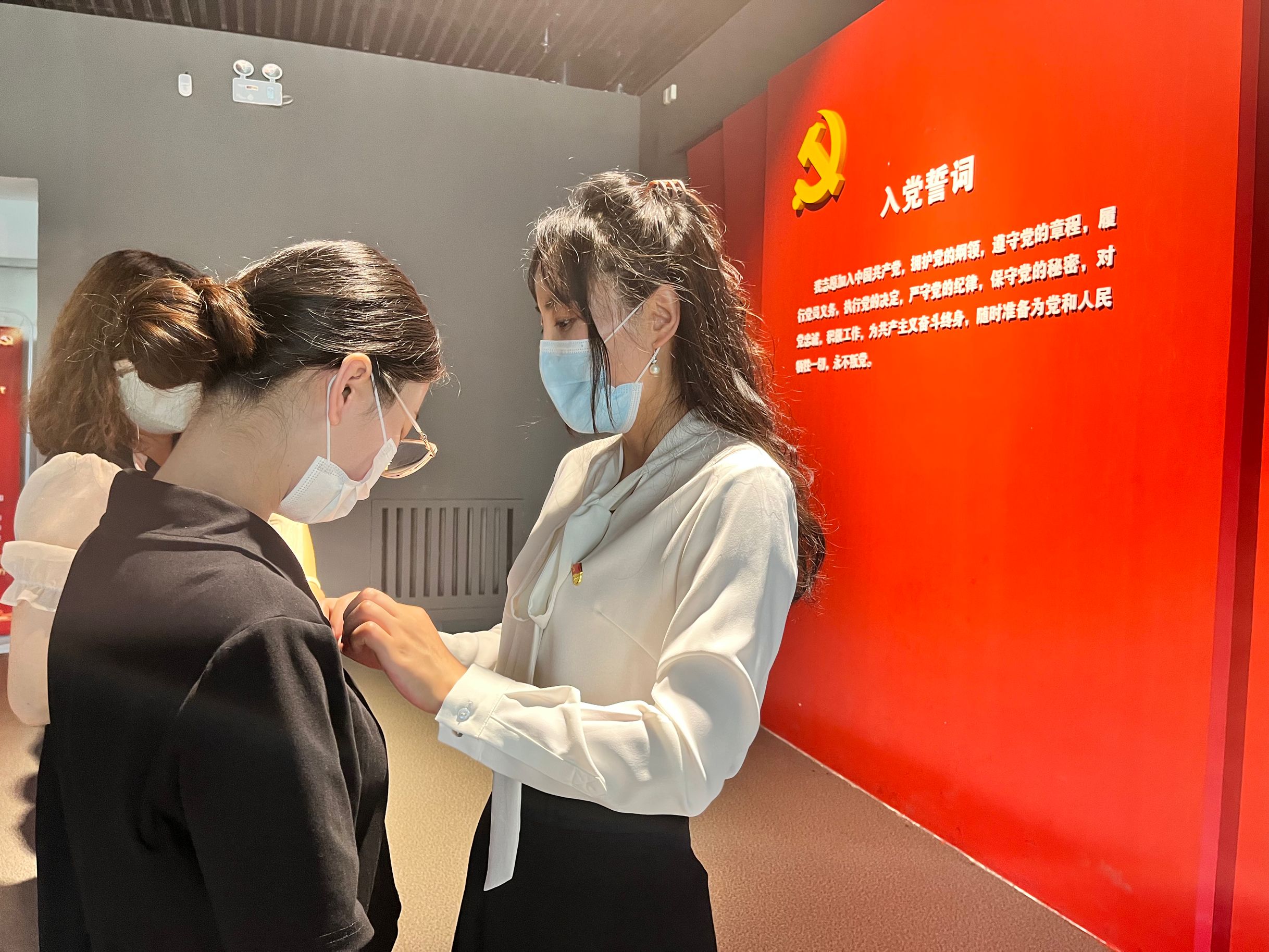 参观完毕后,在支部书记刘老师的带领下,支部预备党员进行了入党宣誓活动。 通过本次党建活动,师生党员对红色甘肃展厅有了更深入的了解,接受了一场红色革命教育,大家纷纷表示,要从自我做起,从现在做起,坚定理想信念,弘扬革命传统,铭记英烈遗志,为党的事业奋斗终生。