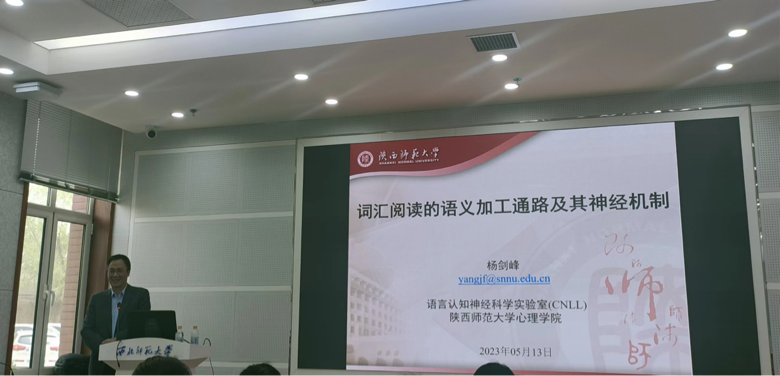 2023年4月13日,应tyc8722太阳集团城邀请,陕西师范大学杨剑峰教授为我院师生作题为《词汇阅读的语义加工通路及其神经机制》的学术报告。本次报告由tyc8722太阳集团城康廷虎教授主持,100余名师生参加了本次报告。
