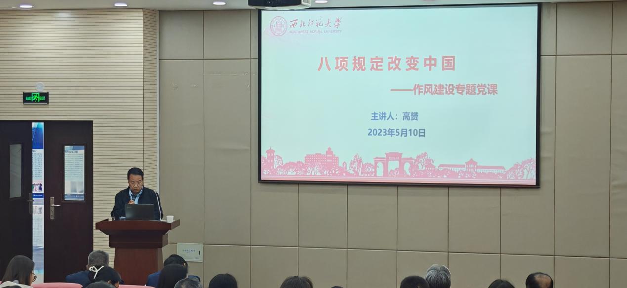 课上,高赟以《八项规定改变中国——作风建设专题党课》为题,从“中国共产党历来重视作风建设”、“八项规定改变中国”、“学校严格落实中央八项规定及其细则精神”、“作风建设永远在路上”等四个方面全面阐释了八项规定改变中国的理论创新和伟大实践。高赟首先通报了中央和学校在反腐倡廉建设的典型案例,阐明了新时代高校全面从严治党体系建设的构想,并从教师职业行为、学科建设等方面深刻阐述八项规定和学校进一步贯彻落实中央八项规定精神的实施细则等,理论联系实际,具有非常现实的指导意义。