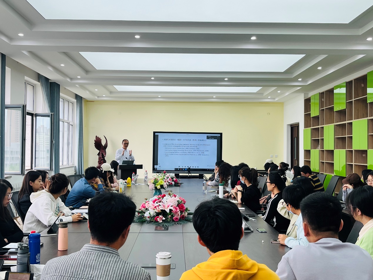 首先,傅世敏教授就物体表征强度对基于物体注意的重要作用做出讲解。接着,傅世敏教授主要围绕对任务无关的显著分心物可以捕获注意;以及非注意的情绪信息具有自动加工性质;意识水平可以影响自动加工等内容进行了详细阐述。最后,傅世敏教授又从自身的教育实践经验出发,启发并鼓舞同学们对于学术研究的思路与热情,激起了各位同学对选择、抑制和自动加工领域的研究兴趣。