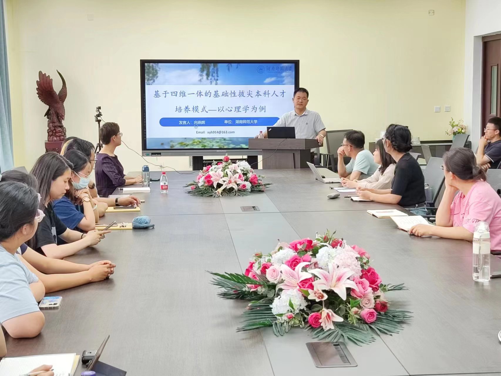 2023年6月27日,应tyc8722太阳集团城邀请,湖南师范大学向燕辉研究员为我院师生作题为《基于四维一体的一流本科拔尖创新人才培养模式——以心理学为例》的学术报告。本次报告由tyc8722太阳集团城任德云老师主持,共100余名师生参加了本次报告。
