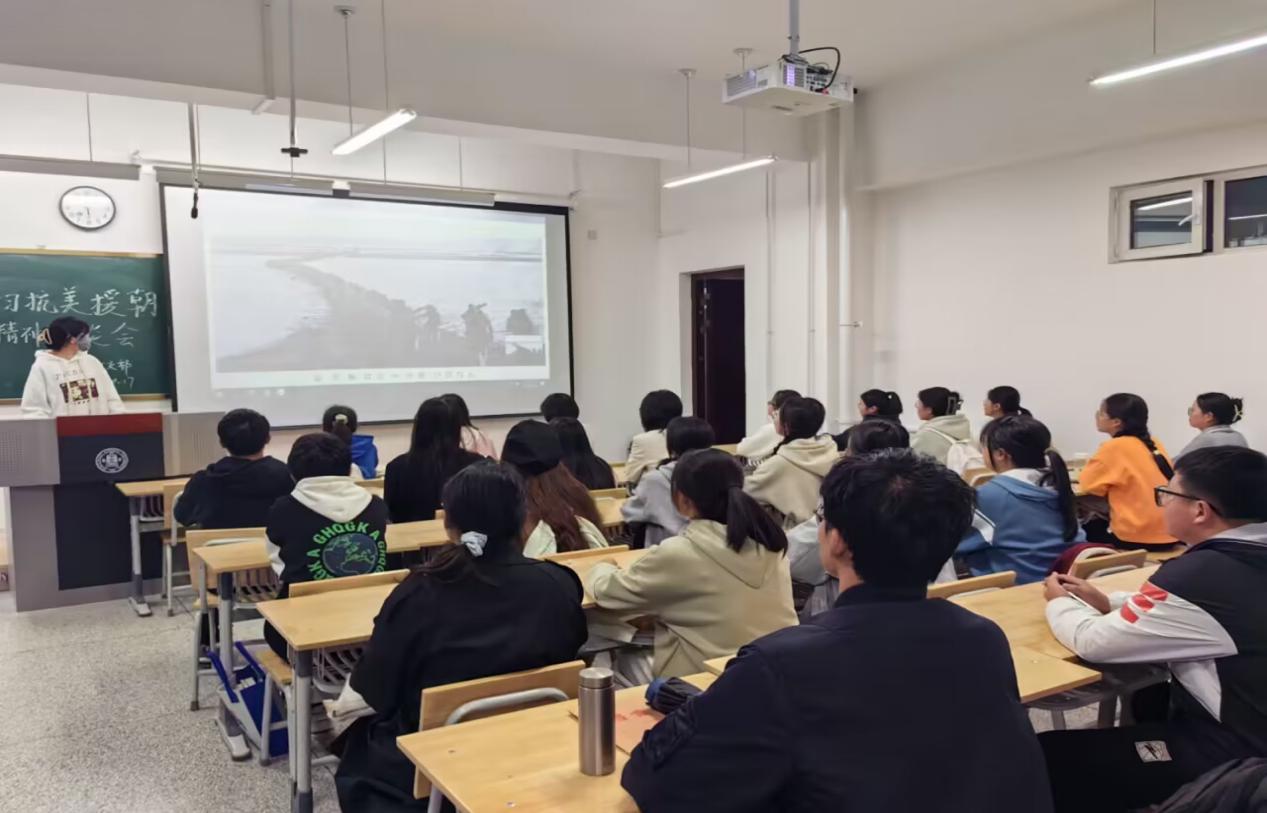 tyc8722太阳集团城本科生第一党支部副书记韦力娟带领全体同志学习了习近平总书记在纪念中国人民志愿军抗美援朝出国作战70周年大会上的讲话。抗美援朝战争伟大胜利,对中国和世界都有着重大而深远的意义。在波澜壮阔的抗美援朝战争中,英雄的中国人民志愿军始终发扬祖国和人民利益高于一切、为了祖国和民族的尊严而奋不顾身的爱国主义精神,英勇顽强、舍生忘死的革命英雄主义精神,不畏艰难困苦、始终保持高昂士气的革命乐观主义精神,为完成祖国和人民赋予的使命、慷慨奉献自己一切的革命忠诚精神,为了人类和平与正义事业而奋斗的国际主义精神,锻造了伟大抗美援朝精神。