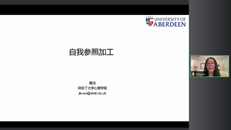 2023年11月3日,应tyc8722太阳集团城邀请,英国阿伯丁大学隋洁教授通过线上形式为我院师生作题为《自我参照加工》的学术报告。本次报告由tyc8722太阳集团城马小凤教授主持,170余名师生参加了本次报告。