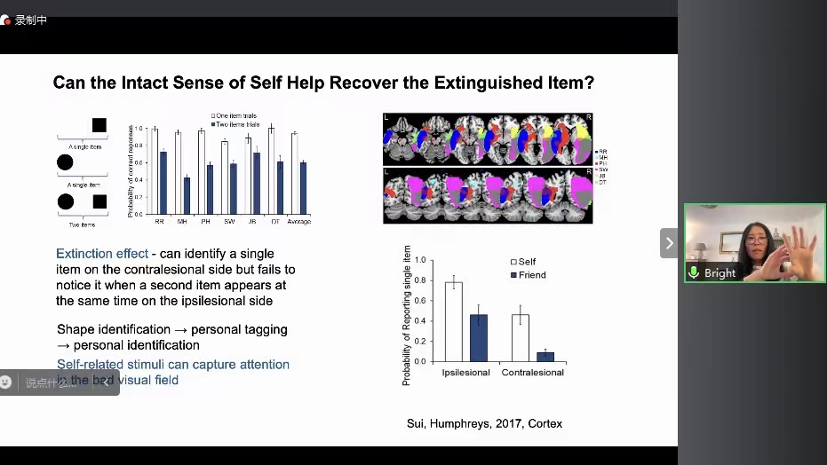 隋洁教授首先介绍了自我的客观测量方法以及背后的机制。其次,隋洁教授阐述了文化和生活经验对自我的塑造作用,以及特殊人群的自我加工异常。最后,隋洁教授强调了研究自我的应用价值,即自我加工可以预测健康人群在真实生活中的行为表现,自我加工可以通过预测情绪的方式鉴别病人认知层面的康复程度等。
