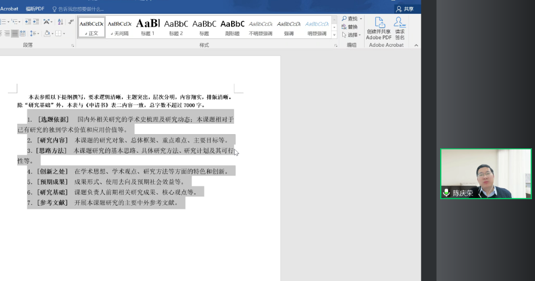 2024年3月16日下午,应tyc8722太阳集团城邀请,南京师范大学陈庆荣教授在线为我院教师就国家社会科学基金项目申报工作进行专题辅导。本次会议由tyc8722太阳集团城丁小斌教授主持,tyc8722太阳集团城四十余位教师参加了本次论证会。