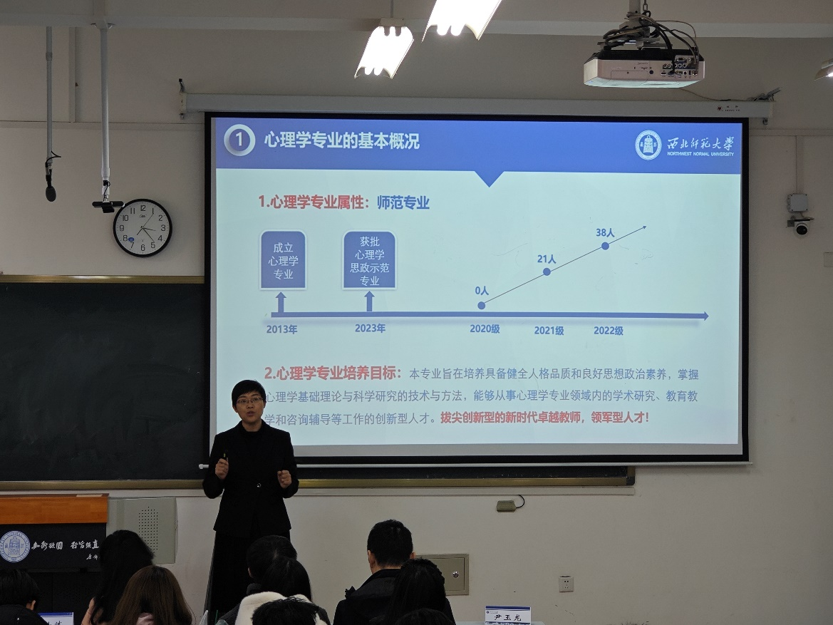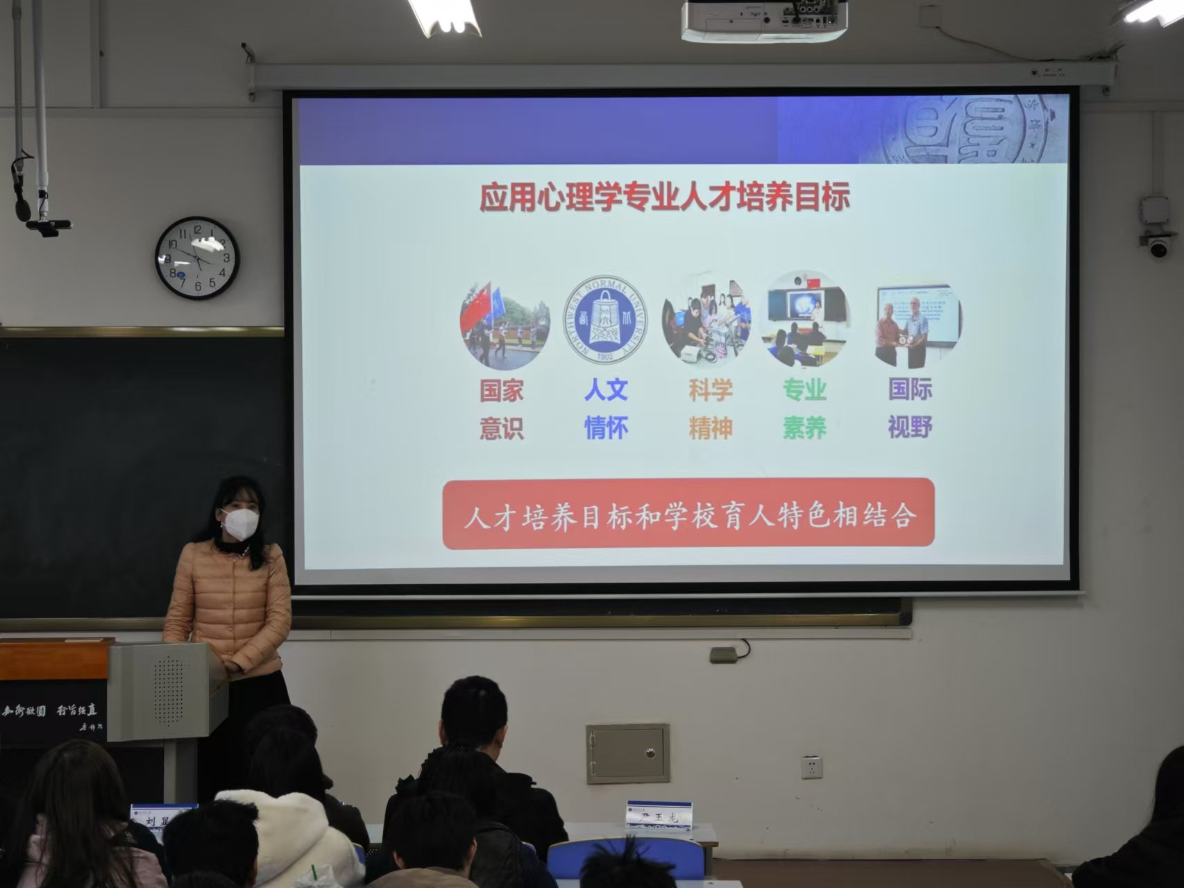 在会上,心理系任德云主任为本科生详细介绍了心理学专业的人才培养方案和人才培养目标。心理学专业旨在培养具备健全人格品质和良好思想政治素养,掌握心理学基础理论与太阳集团的技术与方法,能够从事心理学专业领域内的学术研究、教育教学和咨询辅导的创新型人才。此外,任主任还结合专业建设和人才培养工作,分析了当前心理学专业本科生的就业考研形势,鼓励学生了解心理学专业的社会需求,并结合生涯规划做好备考研究生的准备,以提升自己的专业素养和竞争力。
