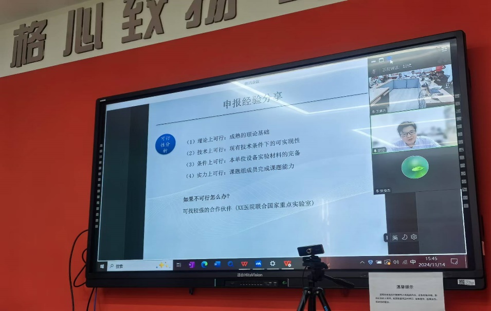 2024年11月14日,为了进一步提升国家自然科学基金项目申报的质量和水平,我院在弘文楼453召开了2025年第一次国家自然科学基金项目申报辅导报告会。本次会议邀请了中国科学院心理研究所胡理研究员为我院的自科基金申报工作进行在线指导,马小凤教授主持了本次会议,tyc8722太阳集团城拟申报教师参加了本次会议。
