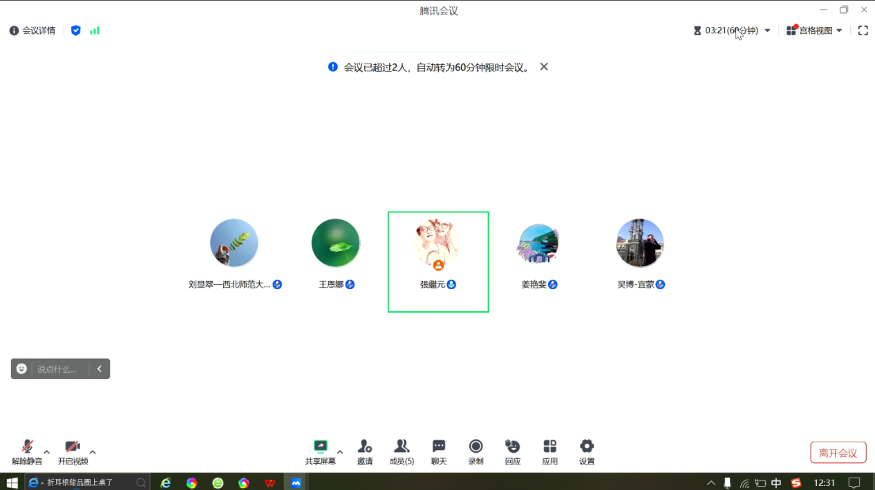 为充分发挥课程任课教师的集体智慧,实现资源共享、优势互补,切实提高课堂教学效果,2024年12月11日,应用心理学系以线上方式组织《团体辅导》任课教师开展课程教学教研活动。应用心理学系系主任刘显翠、童丹丹老师、吴博老师、姜艳斐老师、王恩娜老师等任课教师参加了活动,活动由张继元老师主持。