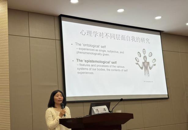 在5月27日上午的“自我加工的神经基础”讲座上,隋教授聚焦神经科学领域,详细介绍了自我加工在大脑神经层面的运作机制。她运用先进的脑成像技术研究成果,剖析大脑不同区域在自我加工过程中的功能与协同作用,让师生们对认知神经科学有了更深刻的理解。