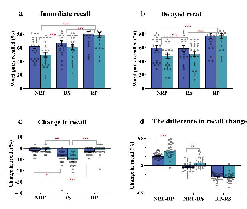 睡眠对于记忆巩固的作用机制一直是认知神经科学领域的核心议题,尤其涉及不同学习方式下记忆痕迹的稳定性与转化过程。提取练习作为一种高效的记忆策略,就是以提取驱动学习,认为提取也是一个编码事件的例子。具体而言,提取练习是指在一个等值的时间里,对某学习材料进行一次或多次的记忆提取比重复学习的编码方式能减缓甚至恢复时间依赖性的遗忘,更能促进长时记忆保持。值得注意的是,提取练习虽能有效强化记忆,却也可能导致记忆表征处于脆弱状态,是否需要依赖离线阶段尤其是睡眠进行再加工与固化,以及该过程背后的神经机制尚未明确。