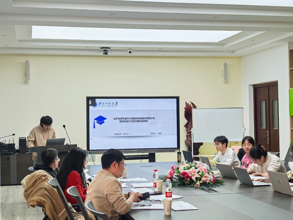 答辩过程严格遵循学术规范,分为学生陈述与现场问答两个核心环节。参与答辩的学生依次围绕选题背景、研究意义、国内外研究现状、研究设计等内容进行汇报,选题主要聚焦于中小学心理健康教育,展现出扎实的专业基础与问题意识。