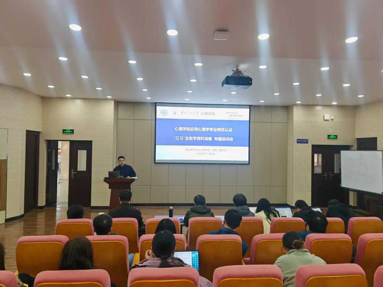 为扎实推进应用心理学师范类专业认证工作,全面提升师范教育质量,学院于2025年11月6日下午在新校区弘文楼159报告厅进行了教学经验交流分享会,学院邀请了教务处实践科马政老师和历史文化学院秦丙坤教授给大家分享经验。