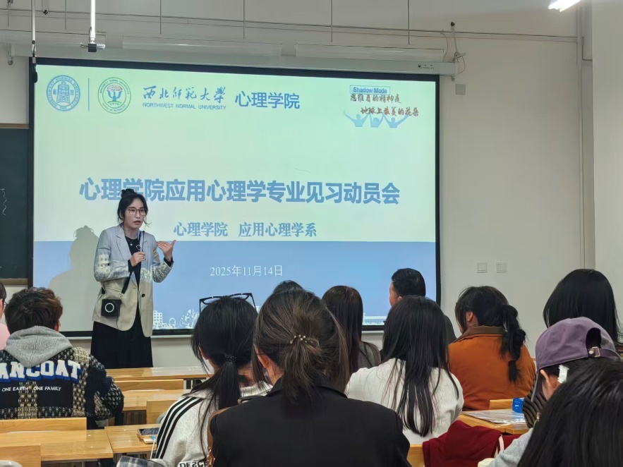 2025年11月14日,学院应用心理学专业本科生第三批见习动员会在弘文楼326教室顺利召开。本次会议由应用心理学系主任刘显翠副教授主持,见习带队老师赵国军、尹玉龙、陈卫平三位老师及2023级应用心理学专业见习学生参加了会议。